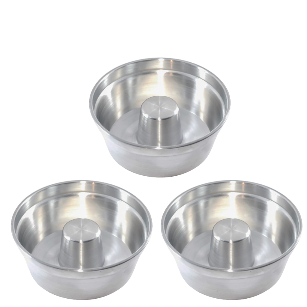Jogo 03 Formas Assadeira Bolo Pudim Hotel Redonda Tubo Alumínio - N16